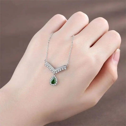 طقم مجوهرات قلادة وخاتم على شكل قلب من الزمرد عيار 925